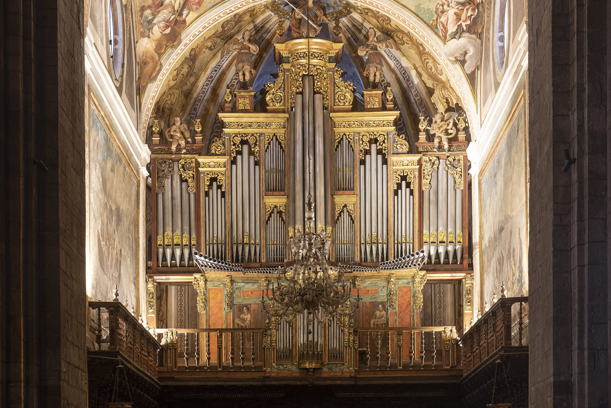 En este templo se adoptó un complejo juego de bóvedas: el cuerpo de naves se cubre con bóvedas vaídas, a excepción del crucero que lo hace con cúpula; por otro lado las capillas laterales presenta una variedad de bóvedas, ya que utiliza crucería estrellada y simple, cúpulas, bóveda gallonada, y cañón con lunetos, utilizando este último tipo de bóvedas también en los tramos de las naves laterales contiguos a la cabecera. Esta variedad destaca exteriormente mediante un rico juego simétrico de volúmenes, culminado por las tres cúpulas con linternas del crucero y las capillas laterales.